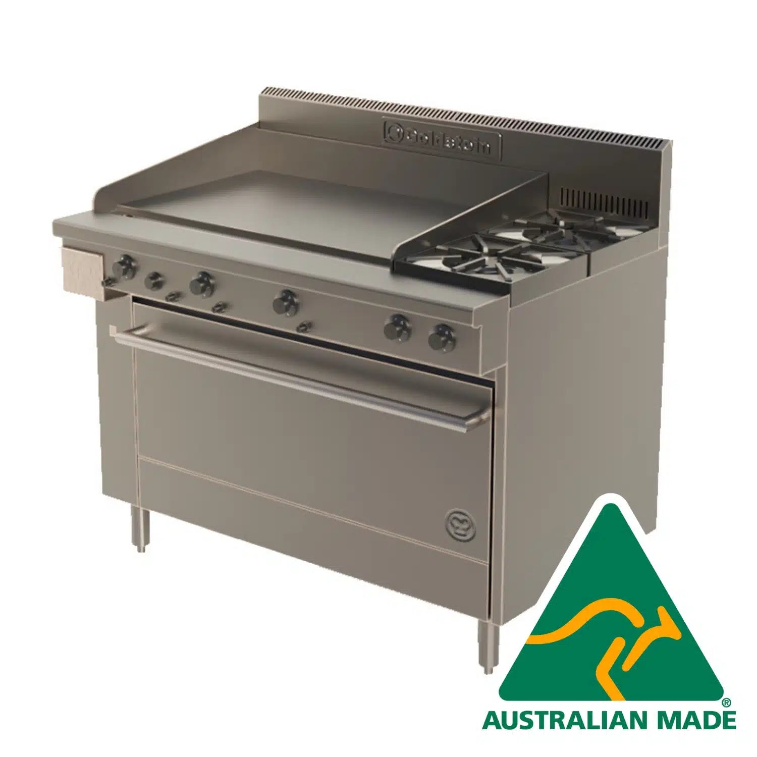 Goldstein 2-Burner and Griddle with 40" Oven Range combines reliability and versatility to meet the demands of a busy kitchen.