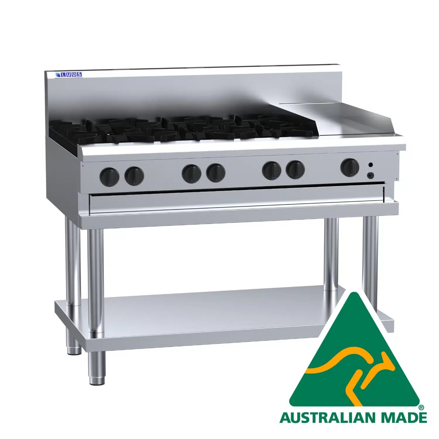 LUUS 6 Burner Cooktop with 300mm Wide Griddle Plate