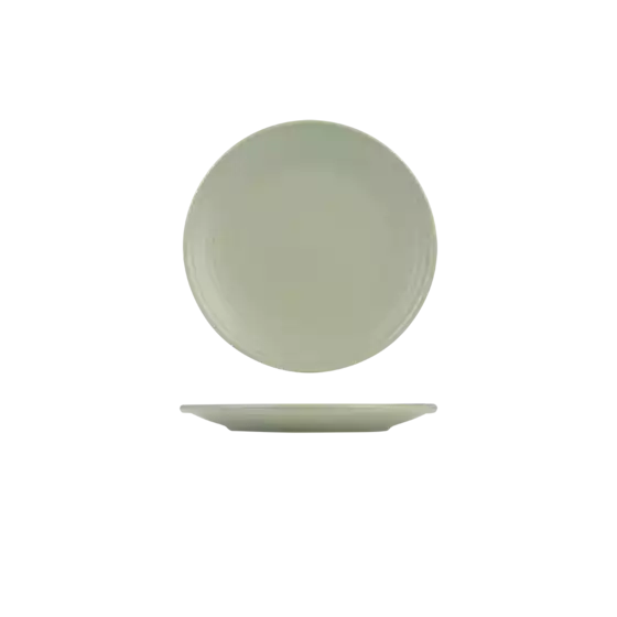 Zuma Pearl Pistachio Ribbed Round Plate-210mm – Crafted from durable porcelain, this 210mm round plate features a ribbed design that enhances presentation. Its neutral finish adds a contemporary touch, making it ideal for restaurants, cafés, or home use. It is designed for daily use with both style and practicality.