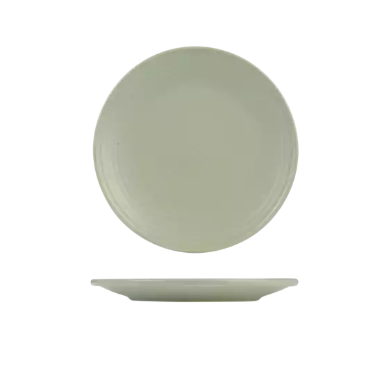 Zuma Pearl Pistachio Ribbed Round Plate-265mm – Crafted from durable porcelain, this 265mm round plate features a ribbed design that enhances presentation. Its neutral finish adds a contemporary touch, making it ideal for restaurants, cafés, or home use. It is designed for daily use with both style and practicality.