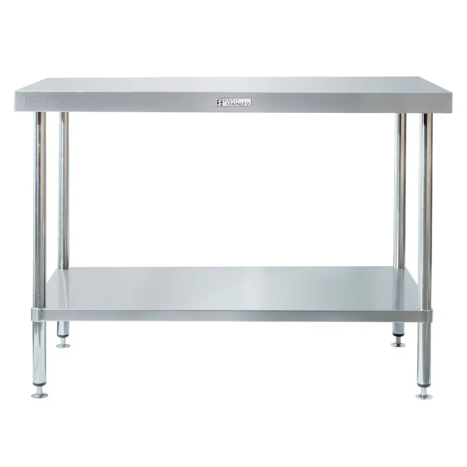 Flat top stainless steel workbench, made from 304 grade stainless steel.