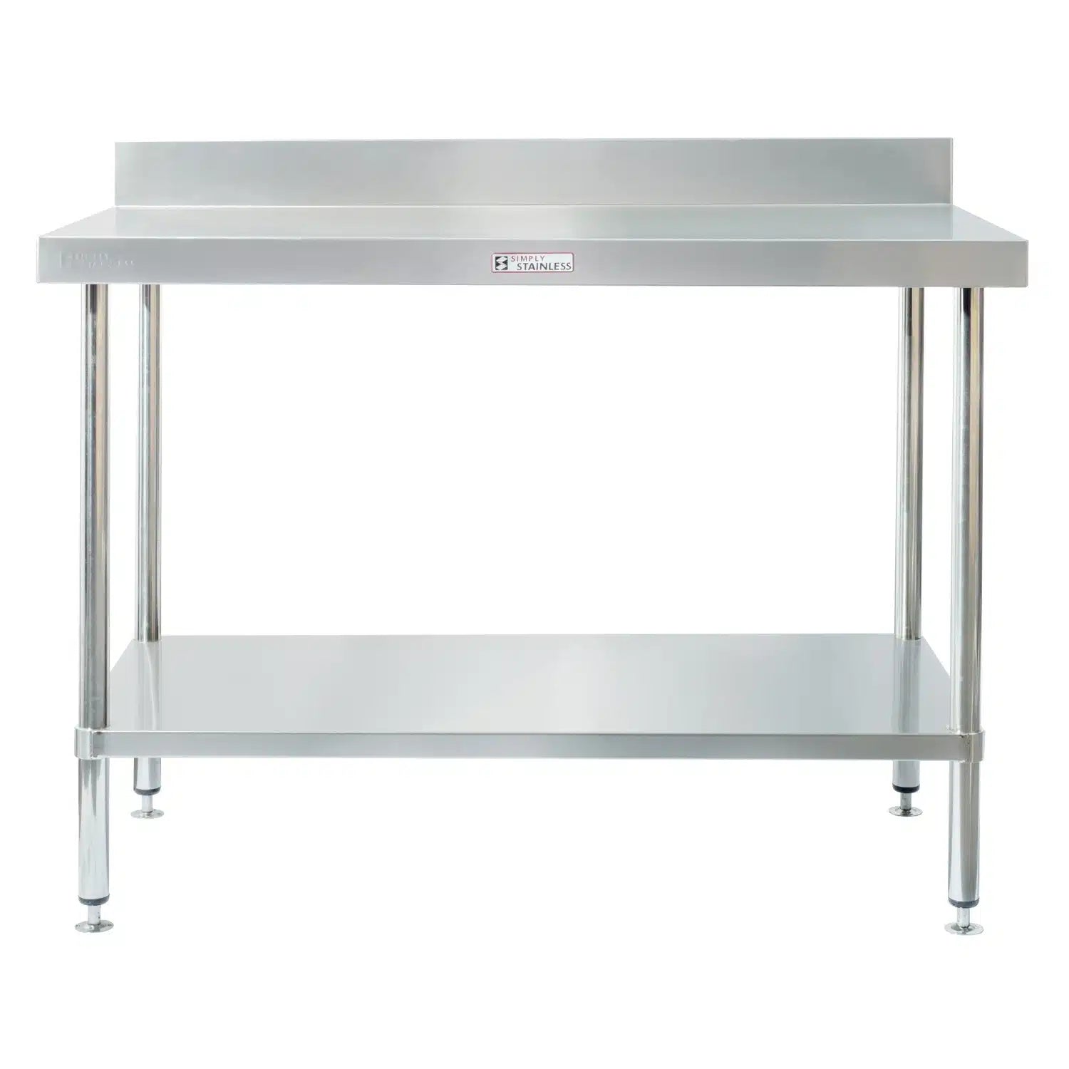Workbench with rear splashback, made from 304 grade stainless steel.