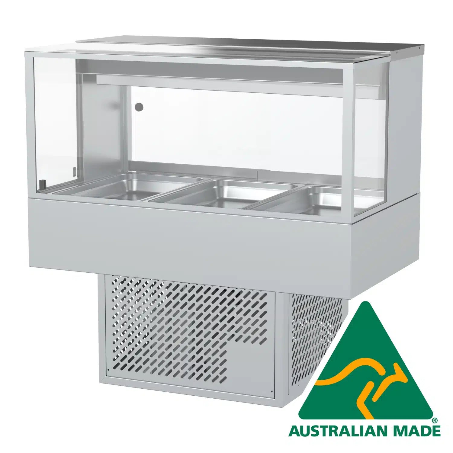 Refrigeration is managed by a 90mm deep cold plate well with a cross fin coil, ensuring your food remains consistently chilled. Available in configurations ranging from three to five modules, the square glass display seamlessly complements any lineup, making it the perfect addition for your needs.